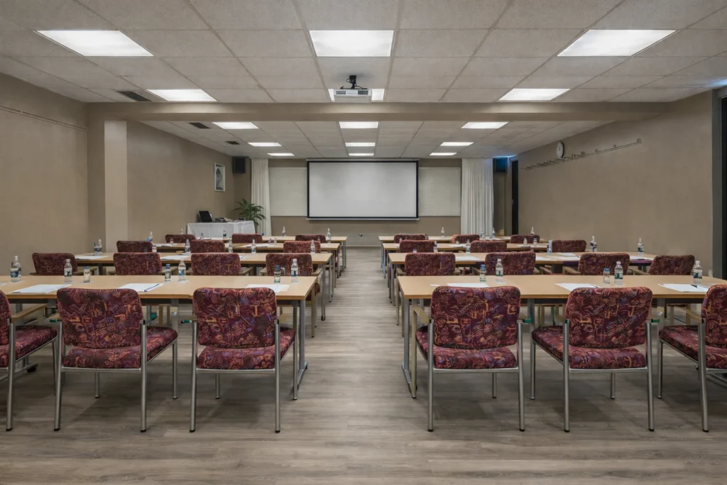 A bright and spacious conference room, perfectly suited for training sessions, presentations and larger meetings. The room offers several possible seating arrangements and works equally well for lectures, workshops and group discussions. It provides an ideal setting for inspiring meetings and productive work.