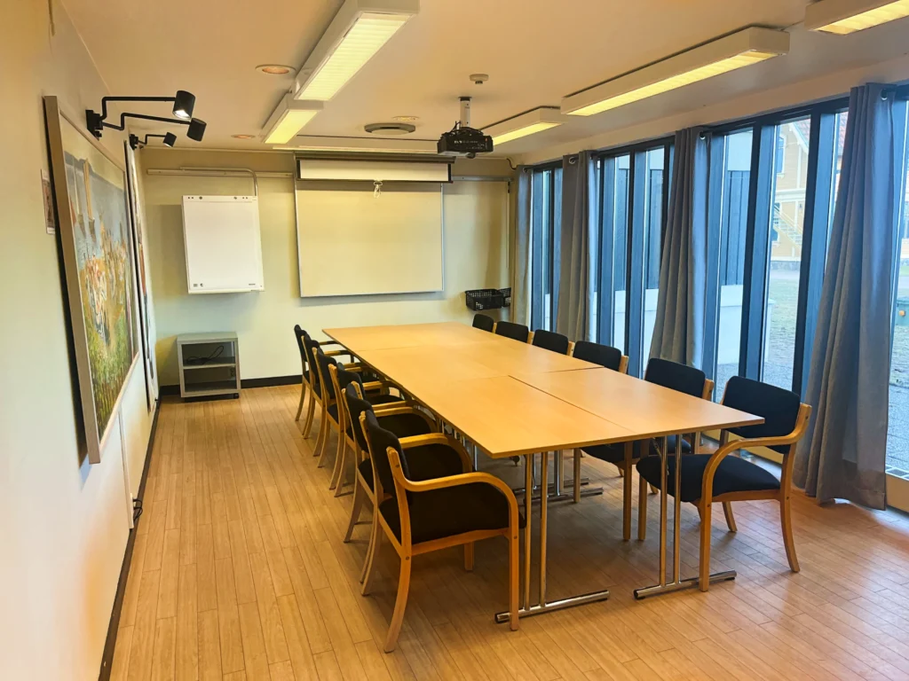 A comfortable meeting room well suited for smaller meetings, board meetings and working groups. The calm setting provides an ideal environment for focused conversations and productive discussions. The room works equally well for short meetings as for full-day sessions.